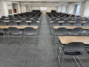 栄周辺の「栄CHUTOホール会議室」です。100名以上収容可能な会議室は、会議・セミナーだけでなく、近隣でのイベント控室や特典・物販会場として最適な空間です。