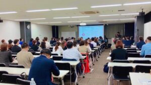 スクール形式の最大のメリットは、発表者側からの視認性が高い点です。すべての参加者が向いているため、発表者は全員の表情や反応を確認しやすく、インタラクティブな場を作ることができます。また、参加者同士が隣接しているため、必要に応じて簡単に意見を交わすことも可能です。