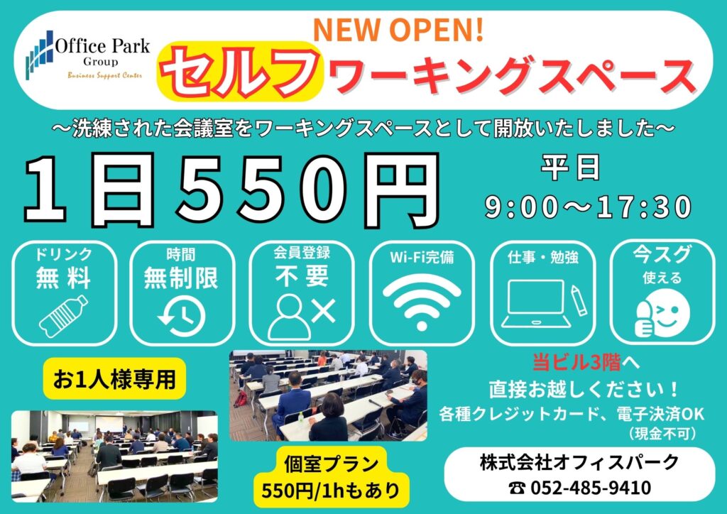 セルフワーキングスペースNEW OPEN!